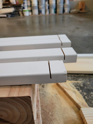 Moving on to the wooden beams for the roof, we added two things: a cut on each side, so that the wood could lock into place on the frame itself, as well as metal hooks which would later hold the acoustic foam on the ceiling.